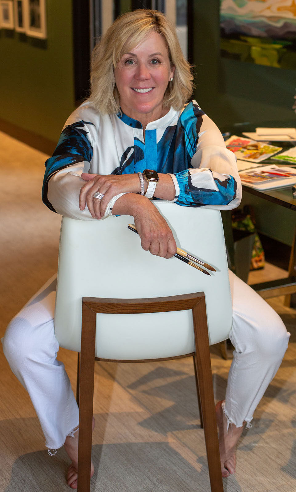 Hi there! I’m Polly Gentry, a Kansas-based abstract multimedia artist with a love for all things bold, colorful, and whimsical. My artistic journey started as a curious kid in Omaha, NE, where I was lucky enough to grow up in a home filled with the works of Picasso, Miró, Chagall, and more. With a visionary architect for a dad (shoutout to Stanley J. How!), creativity and design were practically in my DNA.